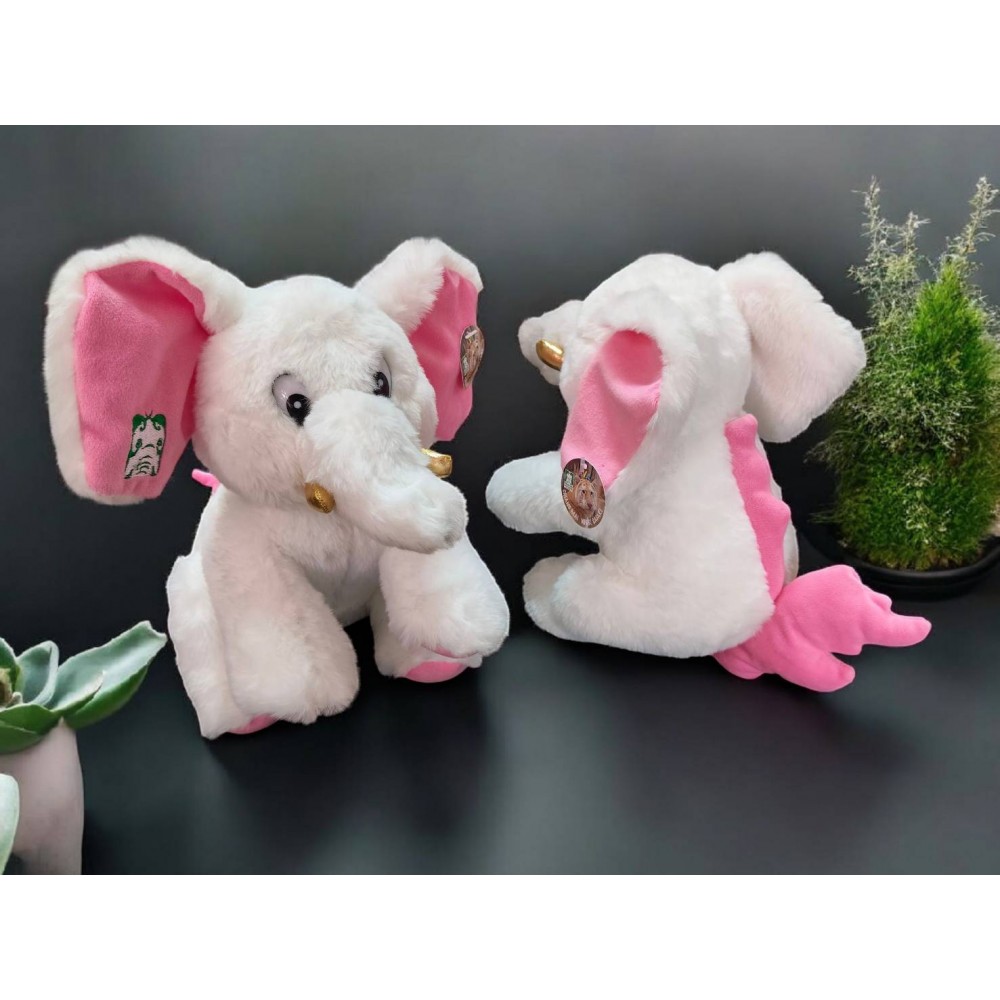 ด้านนอกเป็นผ้าสีขาว ขนนุ่ม ทำความสะอาดง่าย สามารถซักได้ บีบปลายงวงช้างมีเสียง
